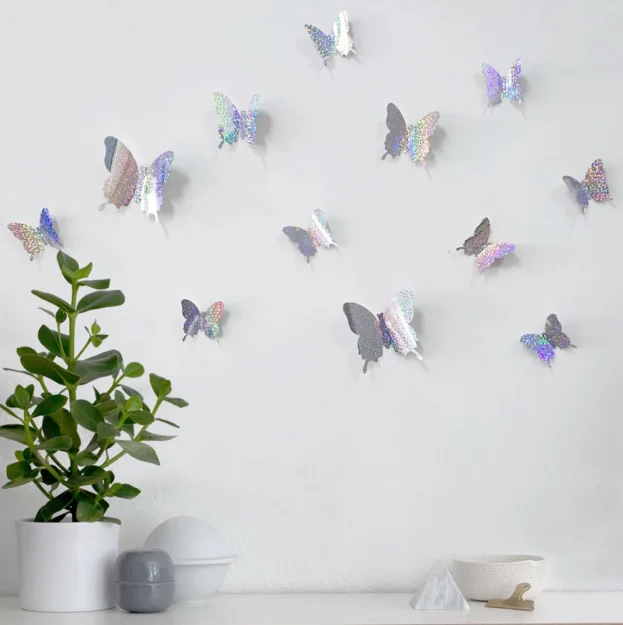 12 Pcs/Set Glitter Butterfly 3D Wall Sticker Kids Room Home Decoration