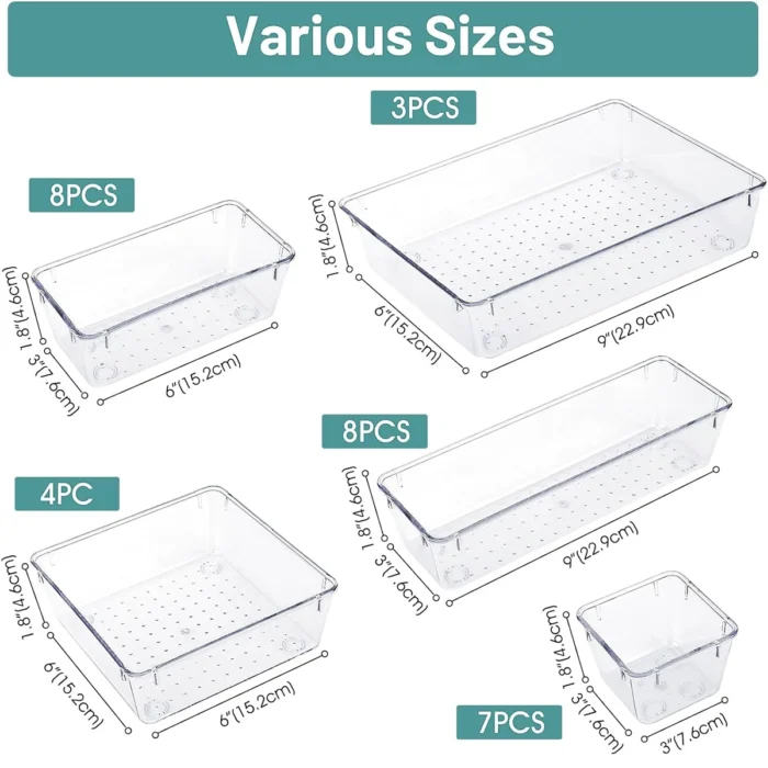 3 reviews for 30 pieces of transparent PET plastic drawer storage box set,4 sizes of desktop drawer