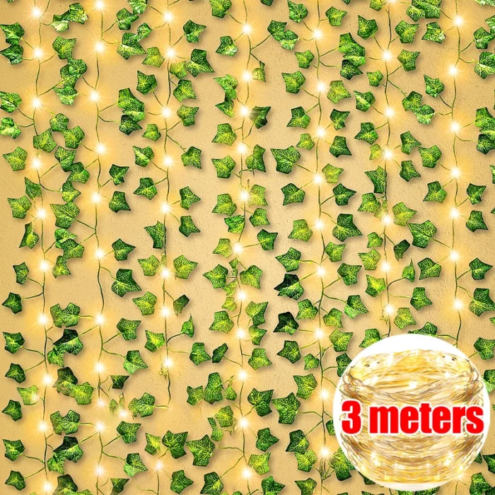Artificial Plant Green Ivy Leaf Vine Lamp String Hanging Fake Plant Decoration Home Wedding Party Garden Decor Battery-powered