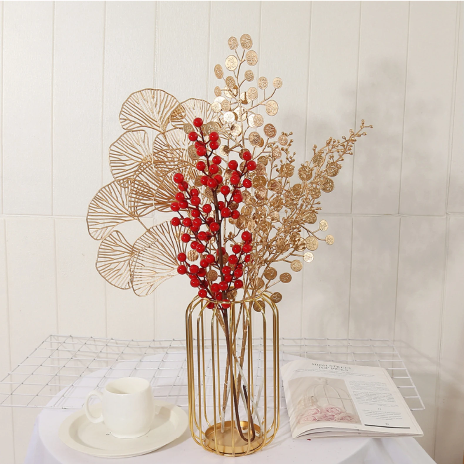 Golden Artificial Plants Maple Leaf Home New Year Desk Decoration Party Wedding Holiday Fake Flower Arrangement Christmas Decor