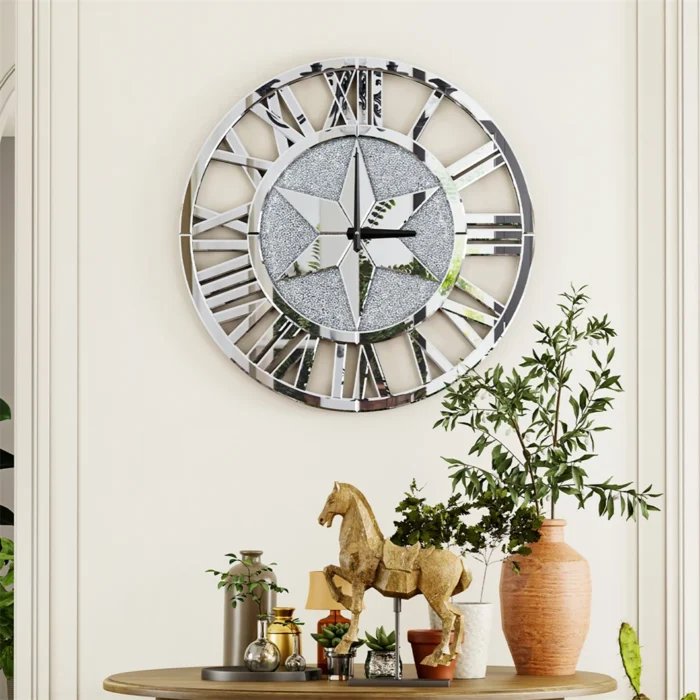Be the first to review “Large Mirrored Wall Clock 60CM Round Stunning Beveled Roman Numeral Skeleton Clock Family Living Room Fireplace Decor” Cancel reply