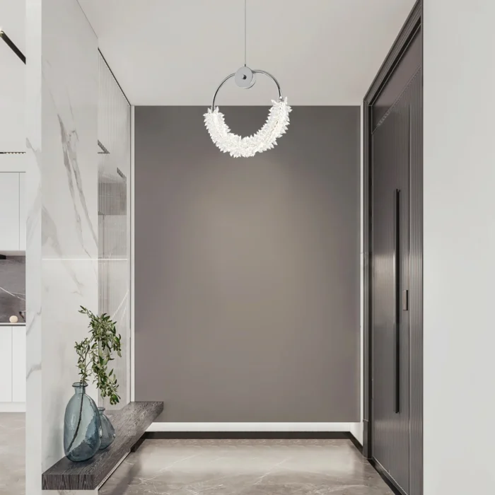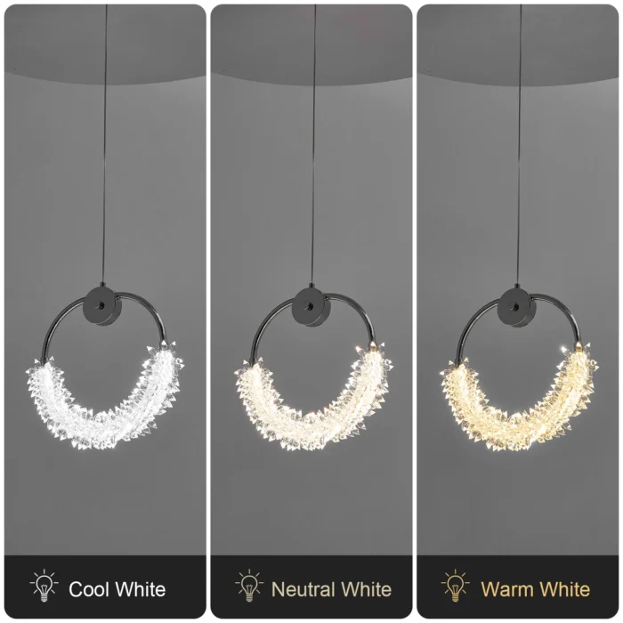 Be the first to review “Modern Crystal Pendant Light Fixture, LED Ring Chandelier with Adjustable Height, Elegant Chrome Finish and Clear Crystal Design” Cancel reply