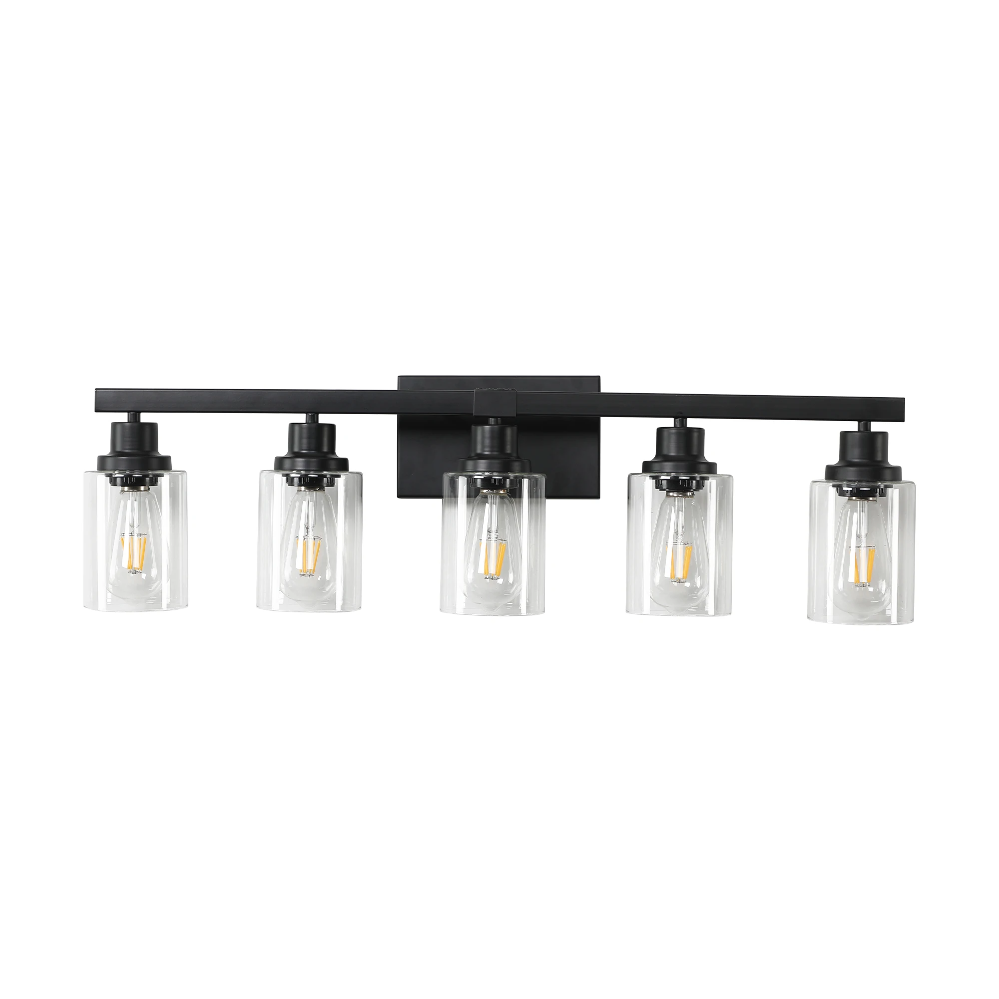 Modern Industrial Bathroom Vanity Light, Metal Finish 5-Light Wall Sconce, Clear Glass Lampshades, Indoor Decorative Lighting