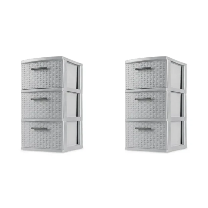 Plastic Cement Weave Tower Drawer Set of 2 Concealed Storage Organizer