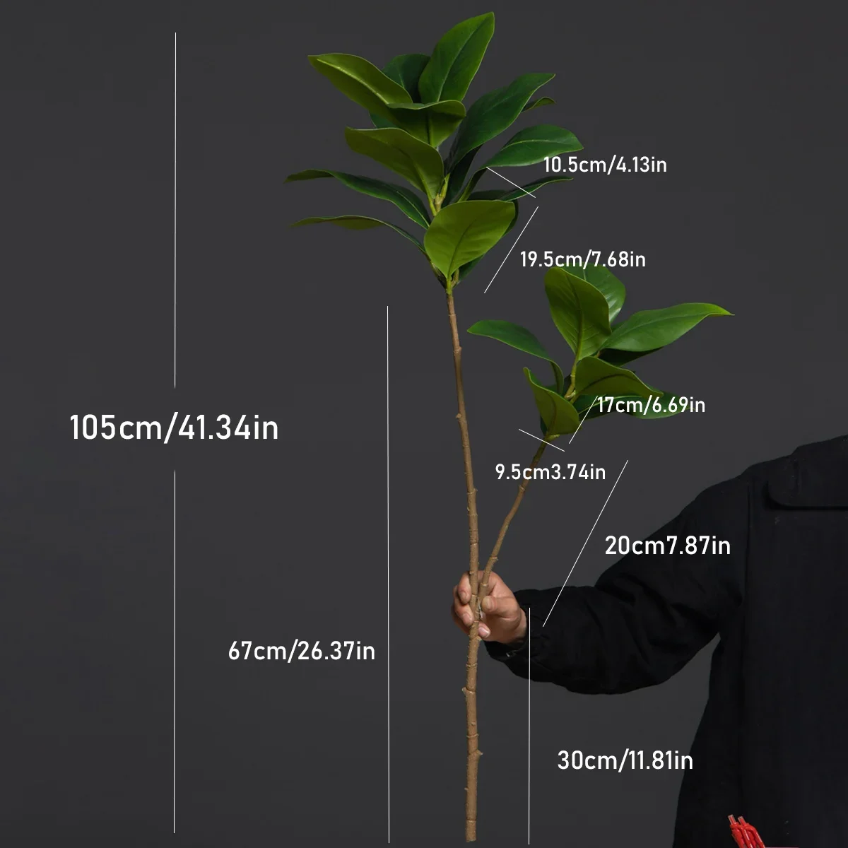 105cm 2 Forks Large Artificial Plants Fake Magnolia Tree Branch Plastic Rubber Leaves Tall Green Landscape For Home Garden Decor