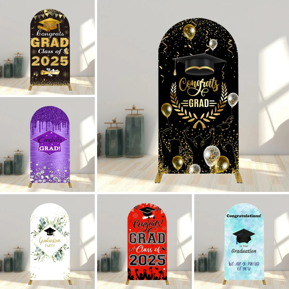 2025 Graduation Round Arch Backdrop Cover Double Side Prom Off Arch Wrinkle Resistant Backdrop Cover for Class of 2025 School