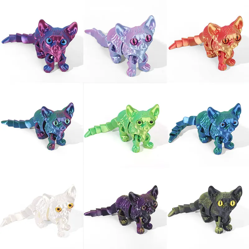 3d Printed Cats Articulated Articulated Toy Cute Kitten Action Figure Home Room Car Decorations Desktop Decor Cat Tax Gift