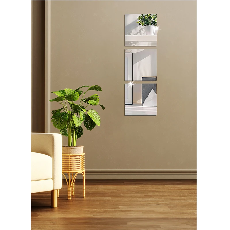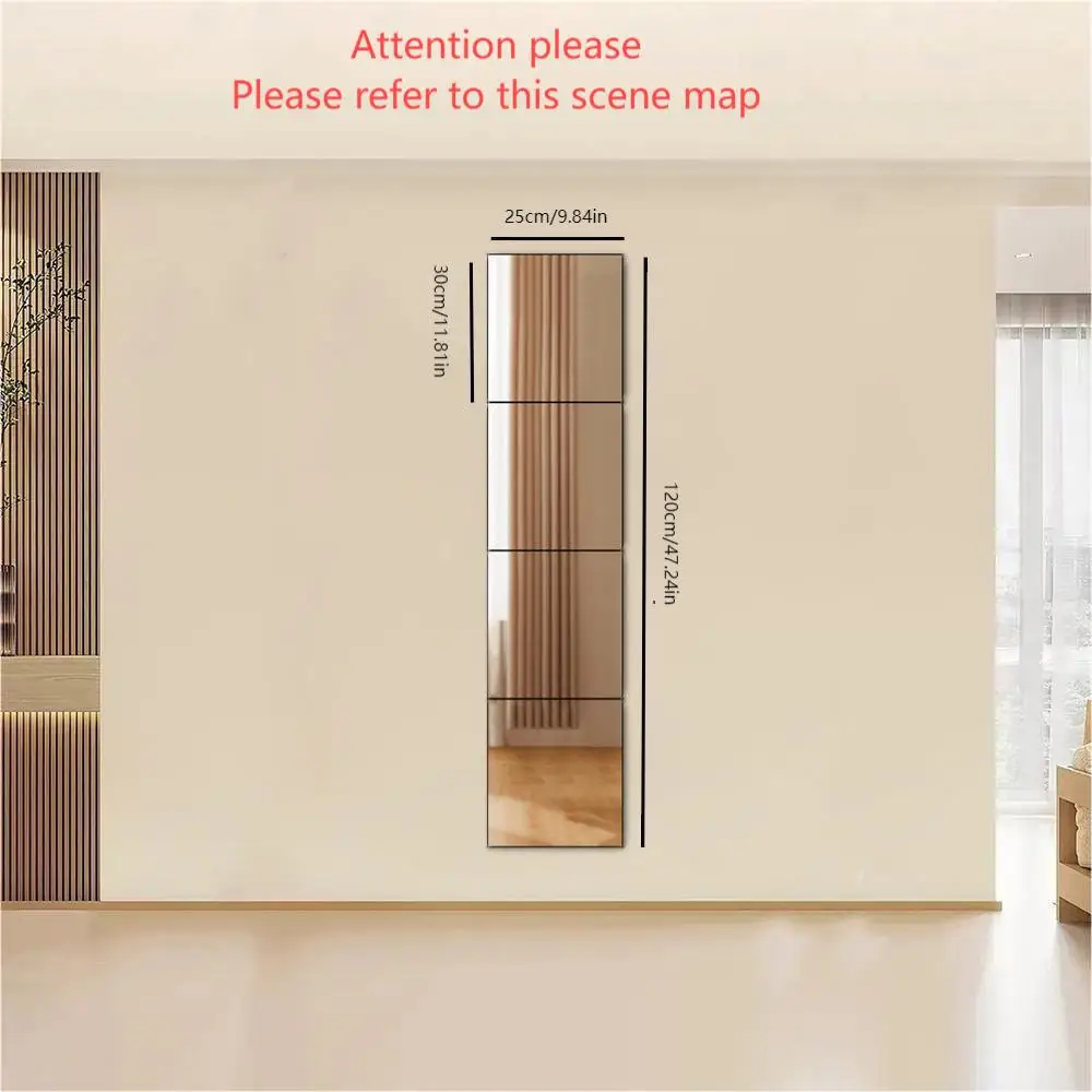 4pcs 30*25cm Mirror Wall Sticker Plastic Mirror Sheets Soft Acrylic 3D Self-adhesives Mirror Decorations Living Room DIY Mirror
