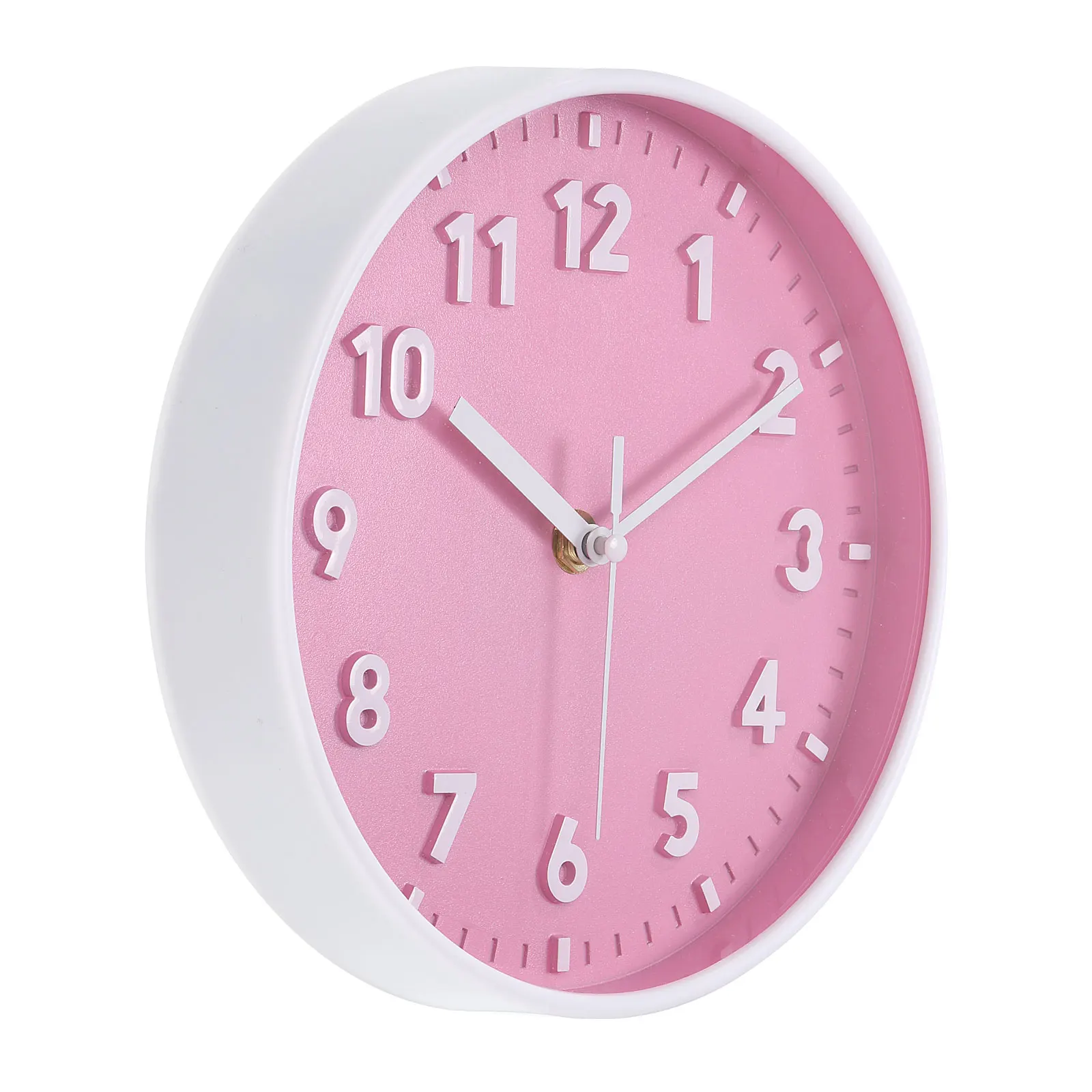 8 Inch Wall Clock 3D Number Quartz Battery Operated Silent Non-Ticking Round Wall Clocks for Office Bedroom Decorative Pink