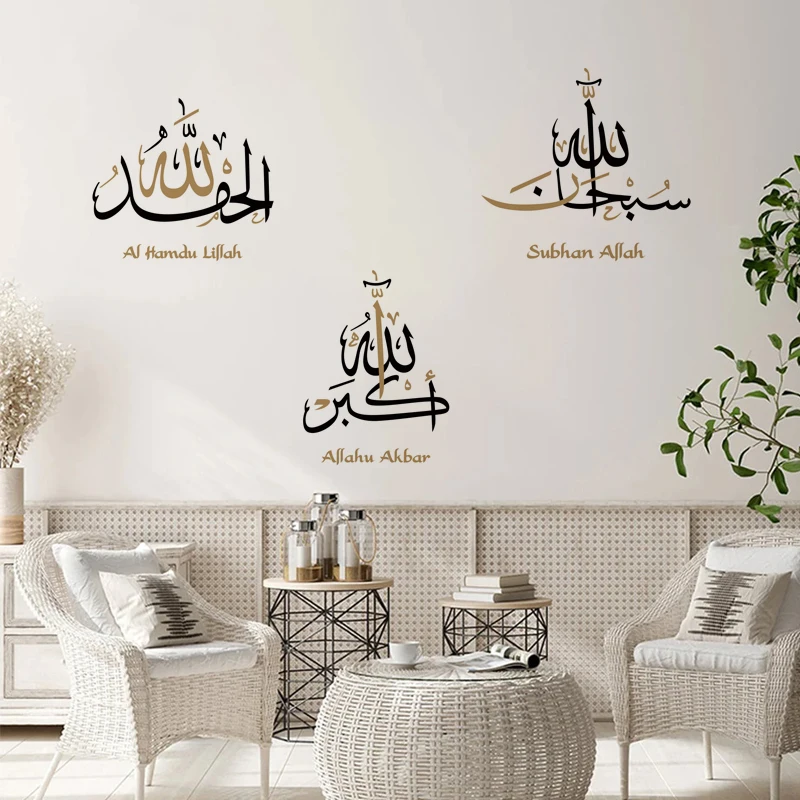 Alhamdulillah Allahu Akbar Islamic Calligraphy Wall Art Stickers Vinyl Wall Decal Mural Religion Ramadan Living Room Decor Gifts