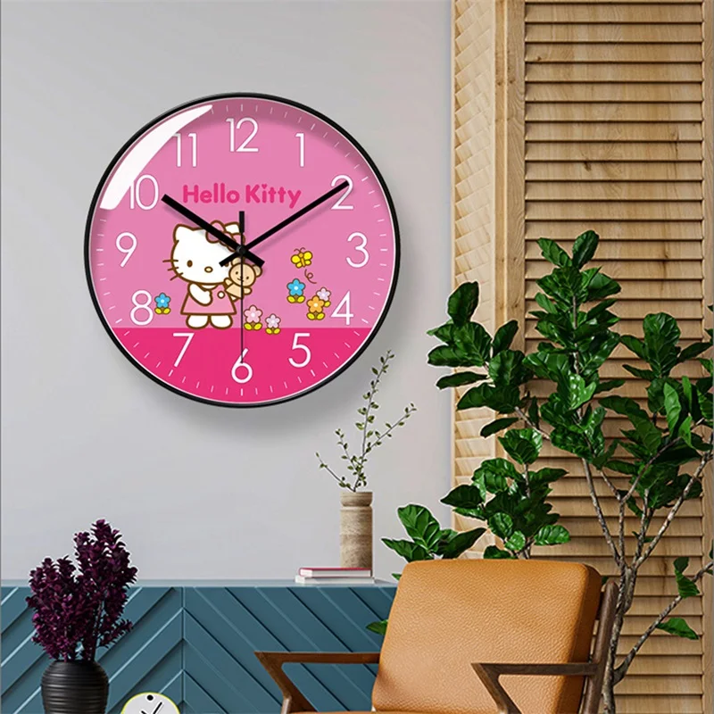 Cute Hello Kitty Wall Clock for Children with Noiseless Non Ticking Sweep Quartz Movement Silent Kids Room Clock