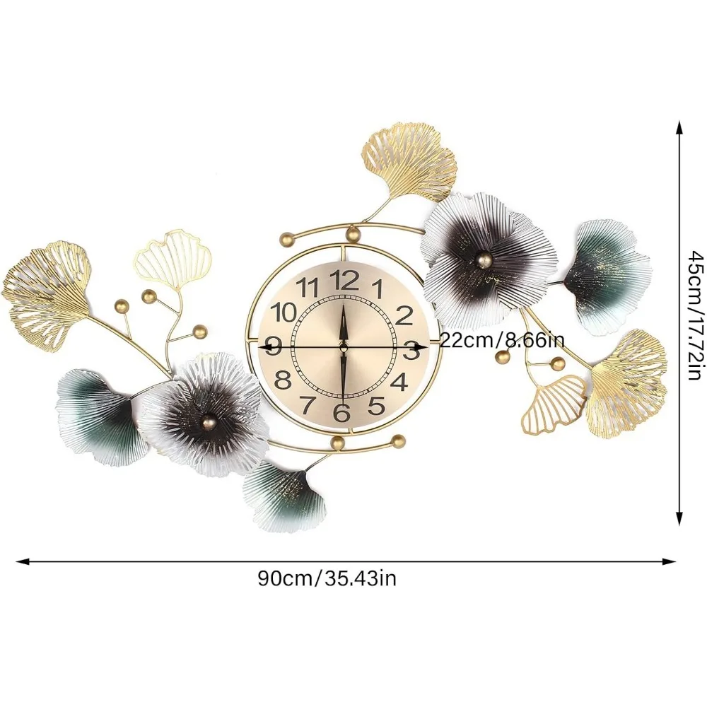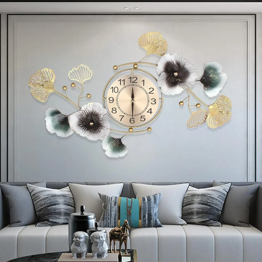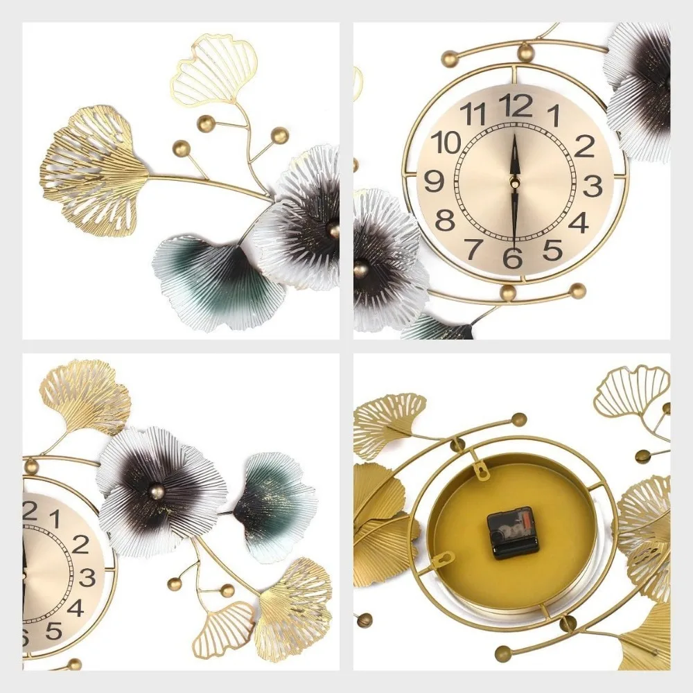 Large Decorative Wall Clock Light Luxury Atmosphere Ginkgo Leaf Quartz Clock Mute DIY Large Wall Clock Wall Decoration
