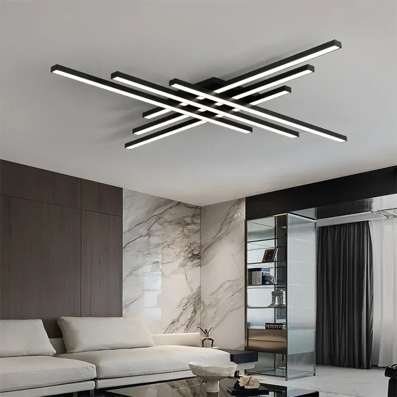 Nordic Minimalist Creative Led Ceiling Lamp Strip Lights Black Chandelier Square Bedroom Lamps Living Room Lamp Led Ceiling Lamp