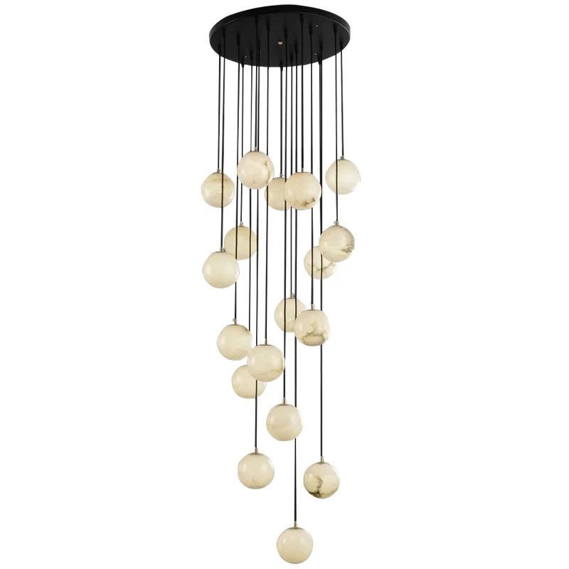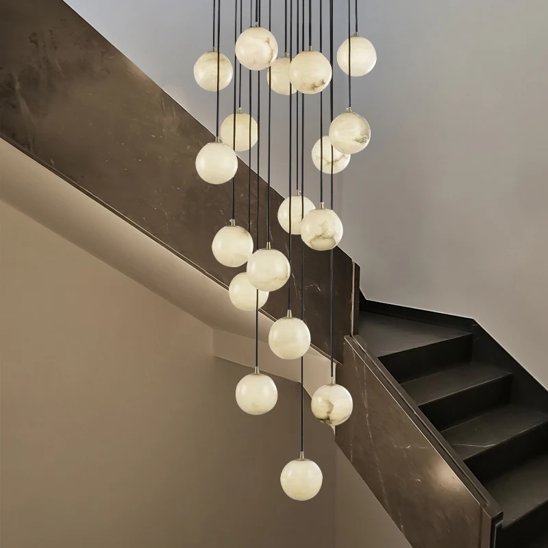 Postmodern Creative Villa Living Room Brass Spanish Marble Chandelier Luxury Hotel Lobby Stair Decorative Pendant Light